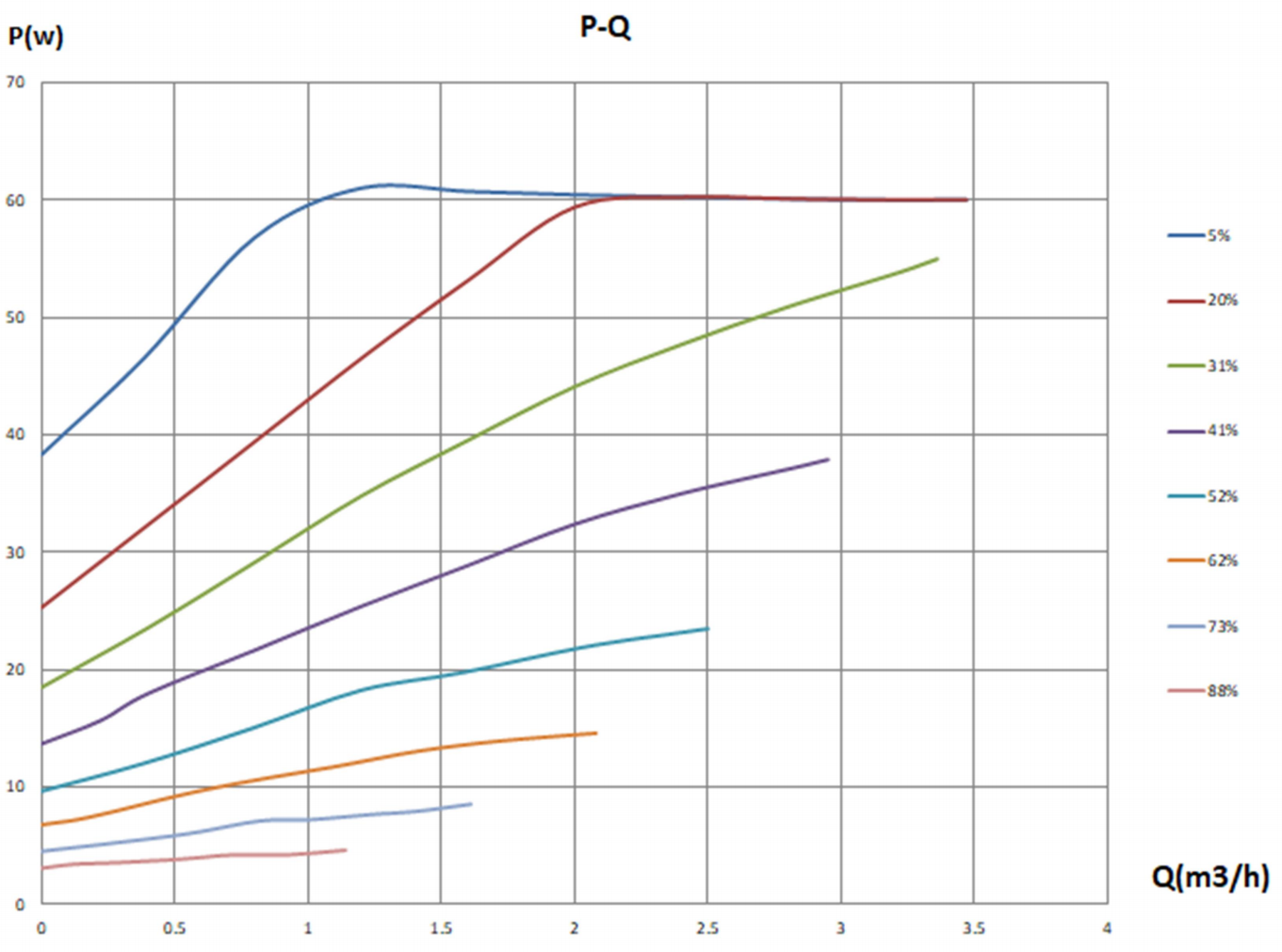 في وضع PWM ، عند البدء من حالة توقف مضخة المياه (بدون طاقة (الإمداد)، يجب الوصول إلى 90% من السرعة القصوى في 8 ثوانٍ على الأقل